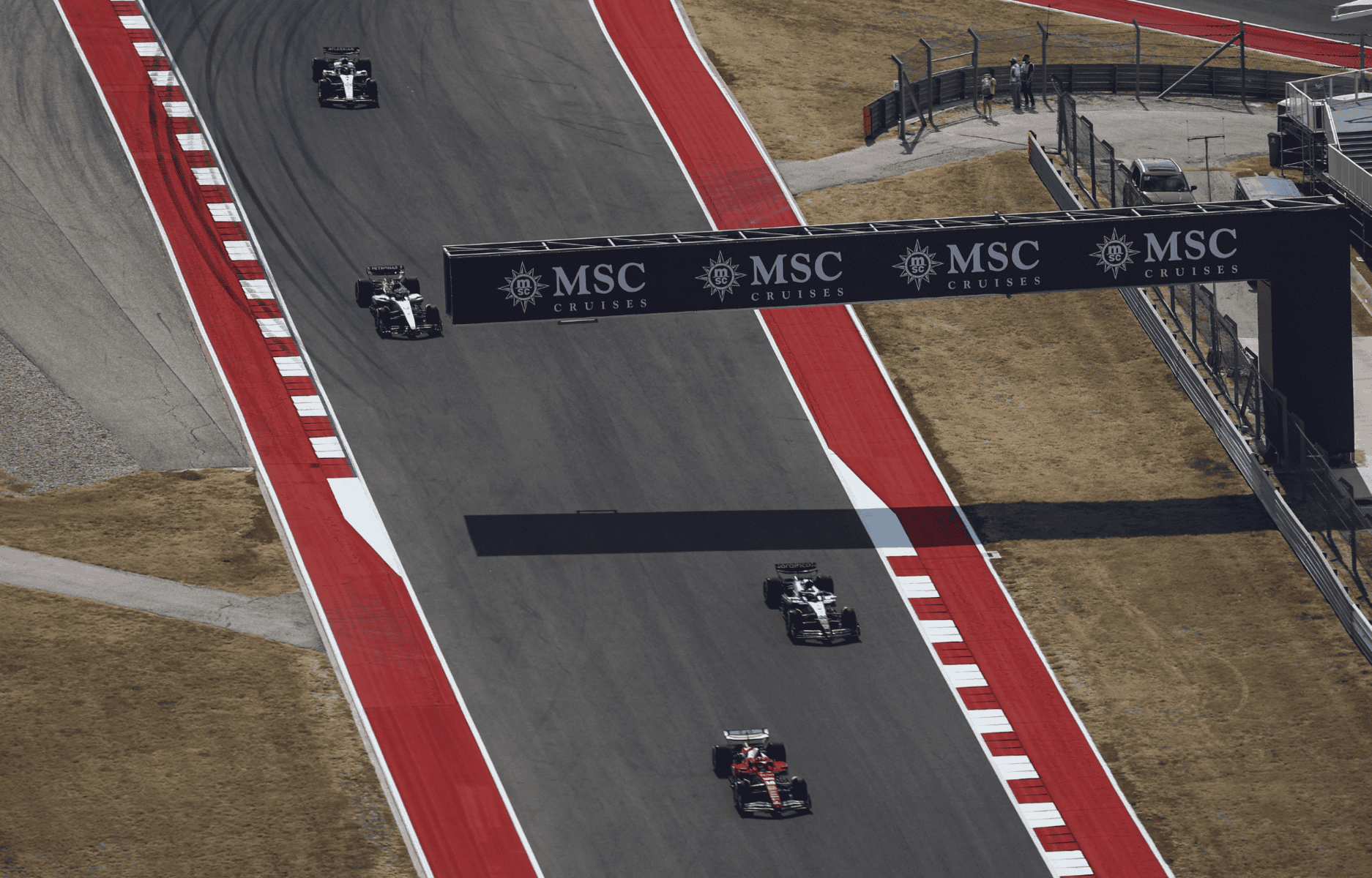 Race day brought everything together. Watching Formula One cars scream through COTA’s challenging elevation changes beneath the massive MSC Cruises branded bridge, I felt the full spectacle of the sport. The sound, an otherworldly howl that vibrates through your chest…the speed, the precision, it all came together in a way no television broadcast could capture. The track’s red and white curbing blurred as cars navigated the technical sections at speeds that seemed impossible.