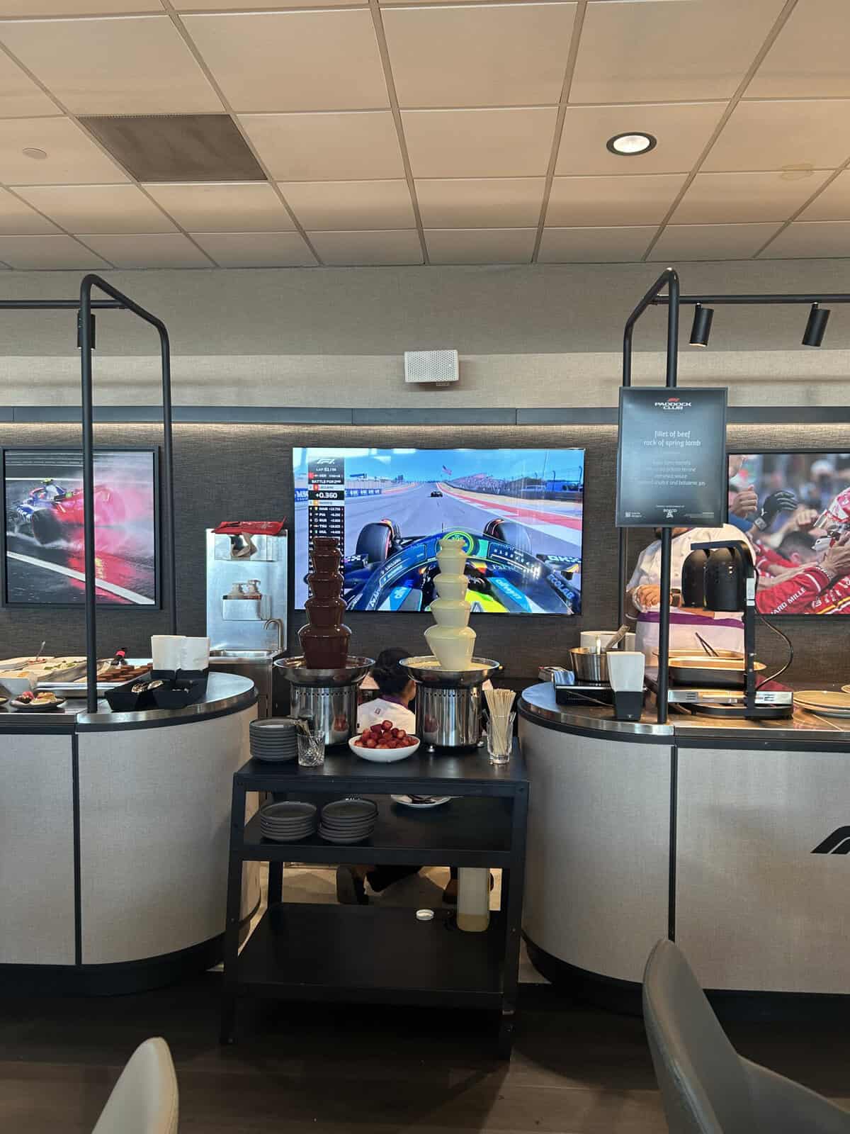 The indulgence reached new heights with dual chocolate fountains—one dark, one white—positioned beneath large screens showing live race footage and telemetry data. I found myself dipping strawberries in Belgian chocolate while watching split-second pit stop decisions unfold on screen. Watching mechanics change four tires in 2.4 seconds while enjoying perfectly executed eggs Benedict created a surreal Sunday brunch.