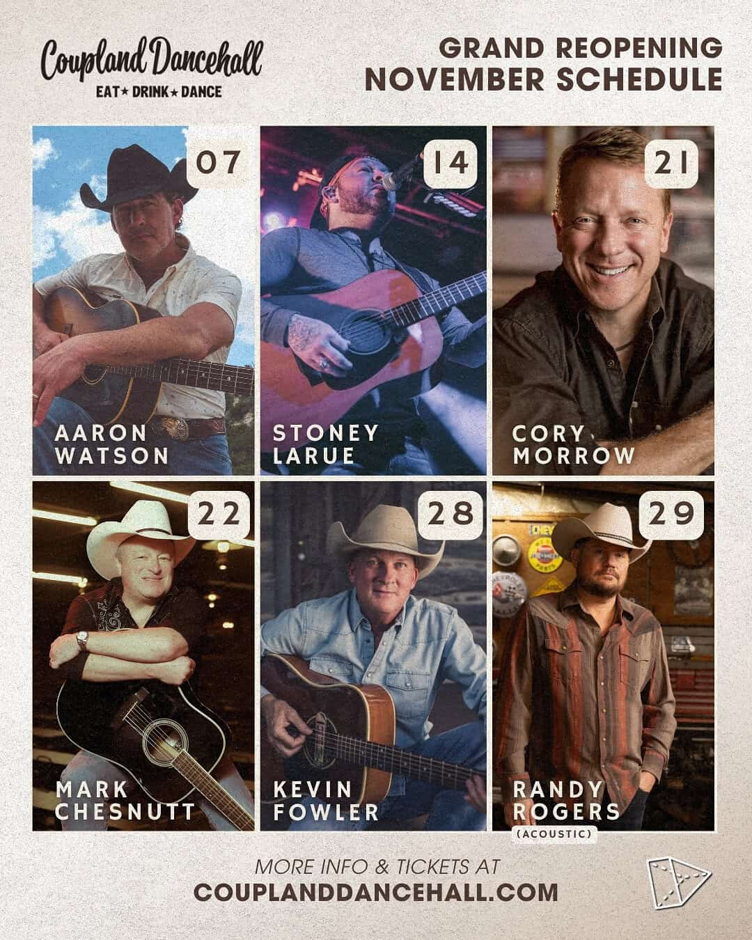 Whether you’ve been dancing at Coupland for years or are planning your first visit, this November is your chance to experience a piece of living Texas music history. Dust off your boots, grab a partner, and get ready for the return of one of the Lone Star State’s most iconic stages.