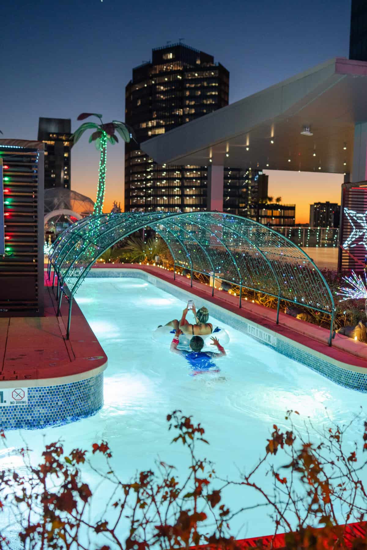 Texas Winter Lights returns to Downtown Houston at Altitude Rooftop at the Marriott Marquis Houston from Nov. 17 through Dec. 31 transforming the rooftop and its iconic Texas-shaped lazy river into a sparkling holiday playground with over 100,000 LED lights, a new 360° photo installation, and festive western-inspired bites. The official Grand Opening Celebration on Nov. 21 features Houston icon Mattress Mack flipping the switch, while guests can enjoy live country bands, dueling pianos, line-dancing, and visits from Santa on select nights. High Dive rooftop grill serves duck banh mi, brisket sandwiches, loaded totchos, specialty cocktails, and local beers, and private igloos or wooden cabins for 4 – 10 guests start at $75 for two hours, complete with curated food towers and bottle service. Returning favorites include the 80-degree Texas-shaped lazy river, VR Sleigh Ride with Santa, Concerts Under the Stars, Movies on the Deck, nightly snowfall, and playful lawn games, while festive hotel suites and themed weekend brunches at Walker Street Kitchen extend the holiday cheer throughout the Marriott Marquis, making it a uniquely Houston celebration for families, friends, and holiday lovers.
