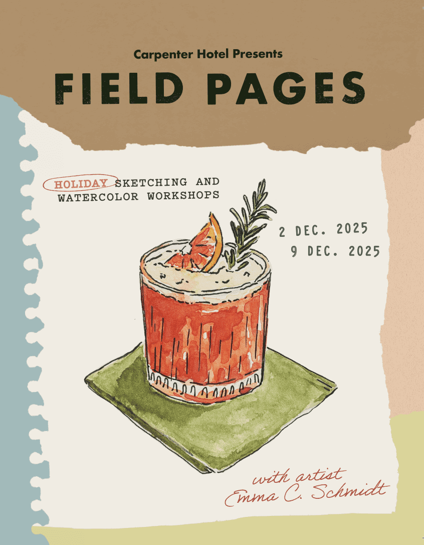 Shake, stir, and sketch your way into the holidays at Carpenter Hotel’s Holiday Cocktail Illustration + Sips on Tuesday, Dec. 9 at 5:30 p.m. This spirited “sip & sketch” night invites guests to learn festive cocktail illustration with local artist Emma C. Schmidt while enjoying handcrafted drinks from Carpenters Hall (cocktail or mocktail included). Art supplies are provided, making this 21+ event a merry mix of creativity and cheer.