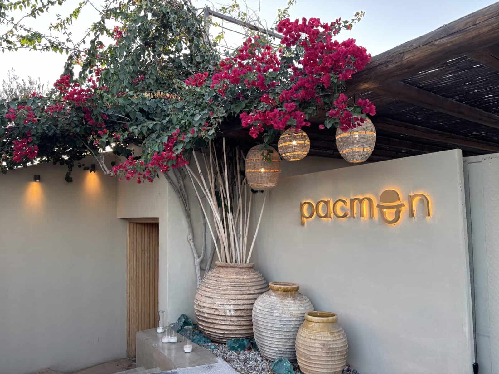 It’s widely known that Pacman may be the best dinner experience on Santorini. The staff knows it. Locals know it. Guests from other properties know it, too, as many of them are seen walking down the slope to the restaurant, brimming with excitement and dressed to impress as they anxiously anticipate the experience ahead.