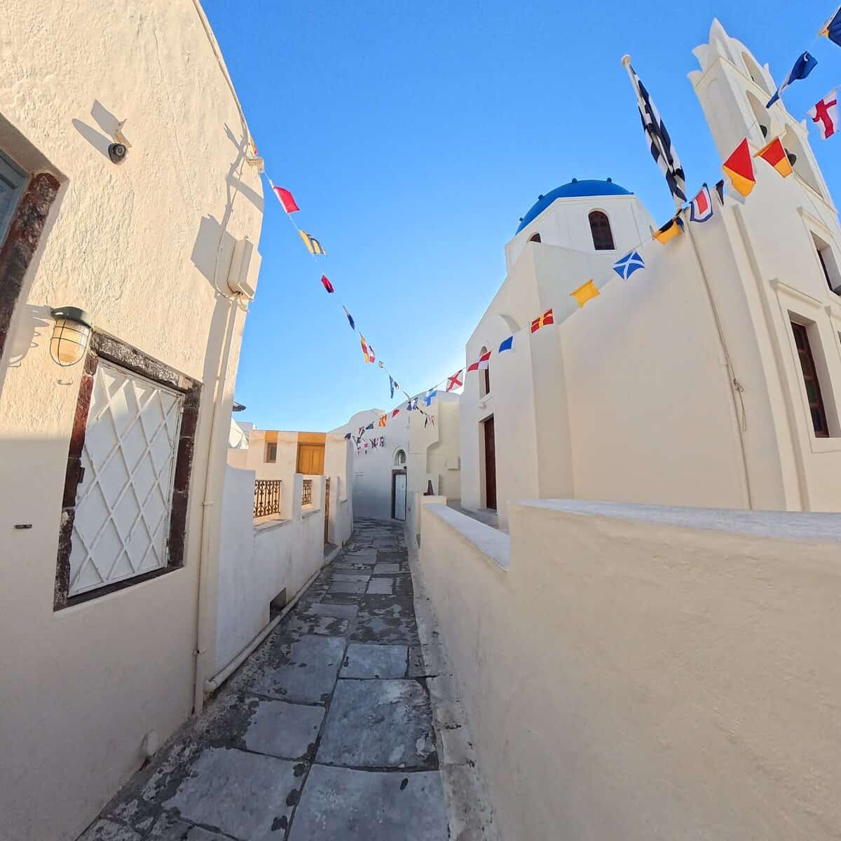 I reminded myself that those blue domes hold religious significance and are more than just props in the background. Standing in line on a cool morning with a camera in hand, I had a moment of quiet reflection. I thought about the past and present, about how many portrait seekers have waited on these rounded steps worn smoothly by decades of standing. It was a spiritual journey to get here, from the streets of Dallas to the cobblestone walkways of Santorini. And as I looked at those blue domes crowned with a cross, I was grateful.