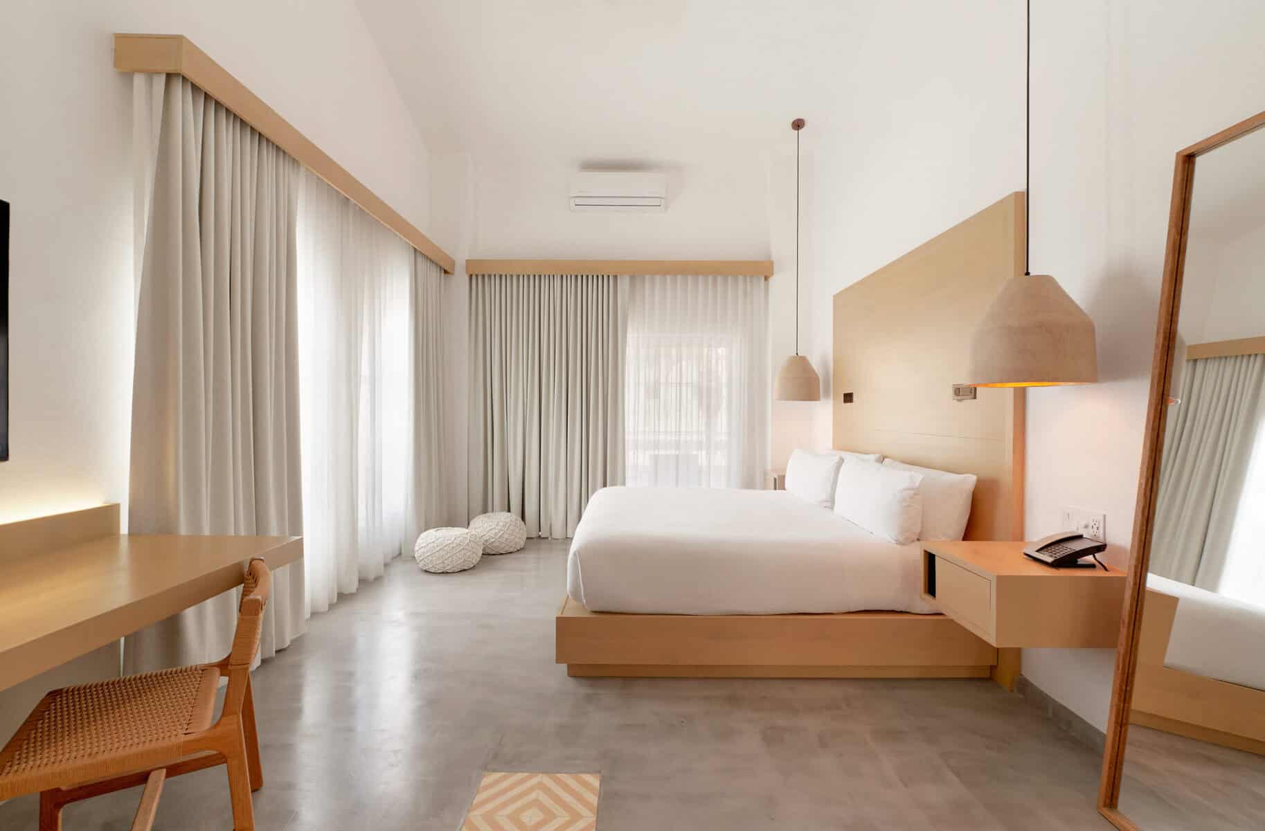 Each room at Bahia echoes the hotel’s defining characteristics. My studio suite overlooking the pool was naturally well lit, creating golden-hour moments. The light driftwood tones paired well with natural textures of woven textiles and white stucco walls, while teal tiles popped with character by the private balcony, ensuring that nothing here is ever too subtle or minimal.
