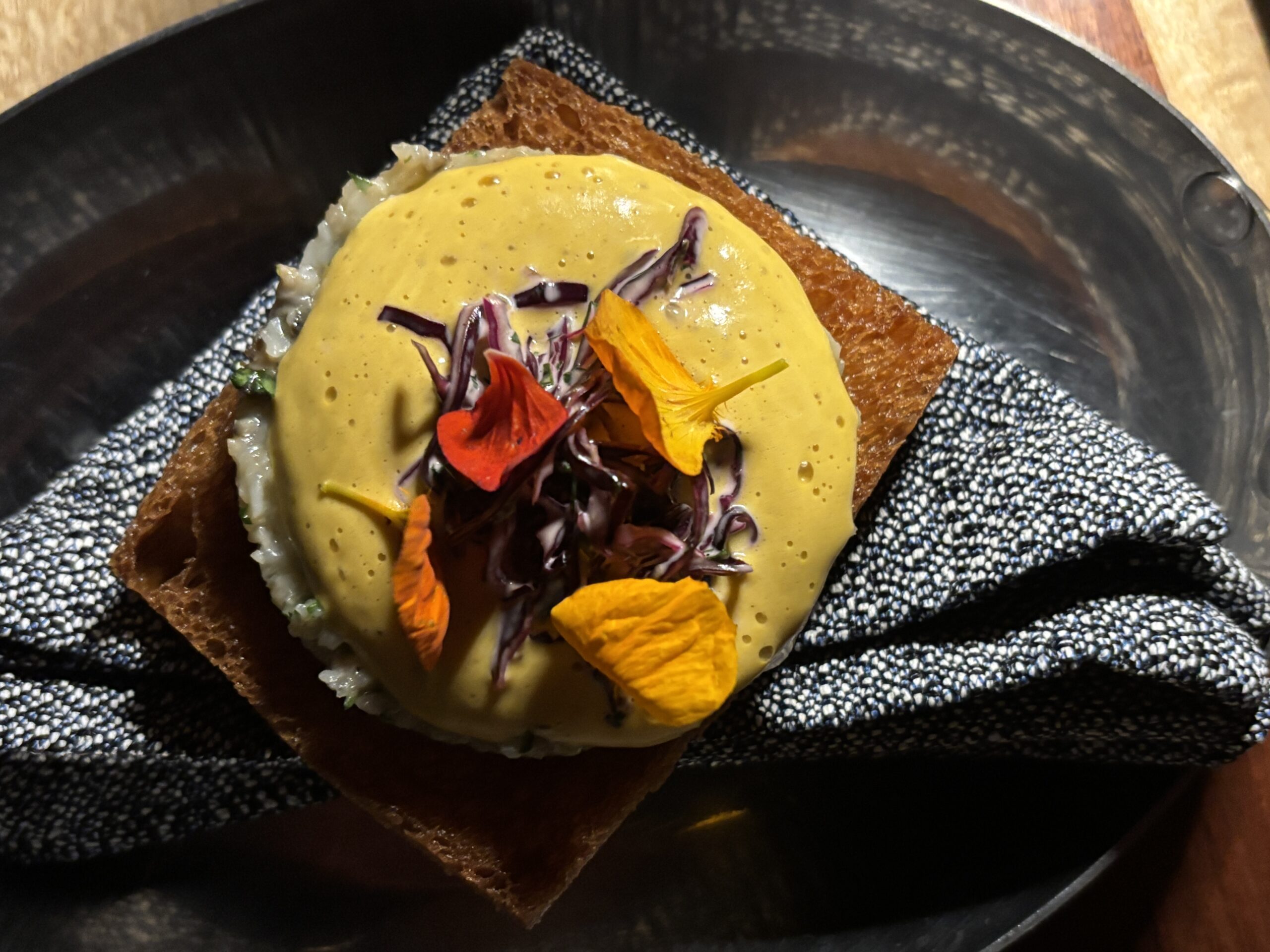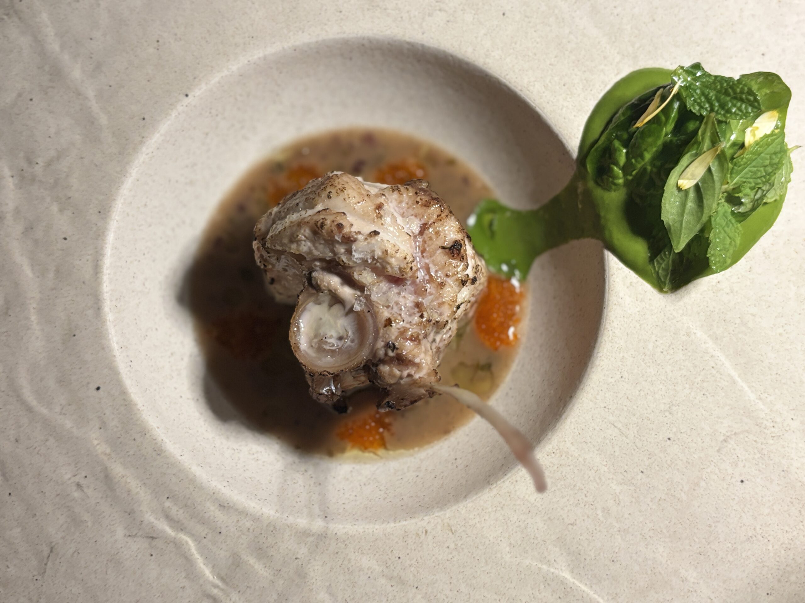 For drinks, the Pura Vida, a rich mix of Mezcal Joven, hibiscus, guava nectar, cardamom, agave, and a burning twig of sage, captivates all the senses in a spirited refreshment. I ordered more than one.