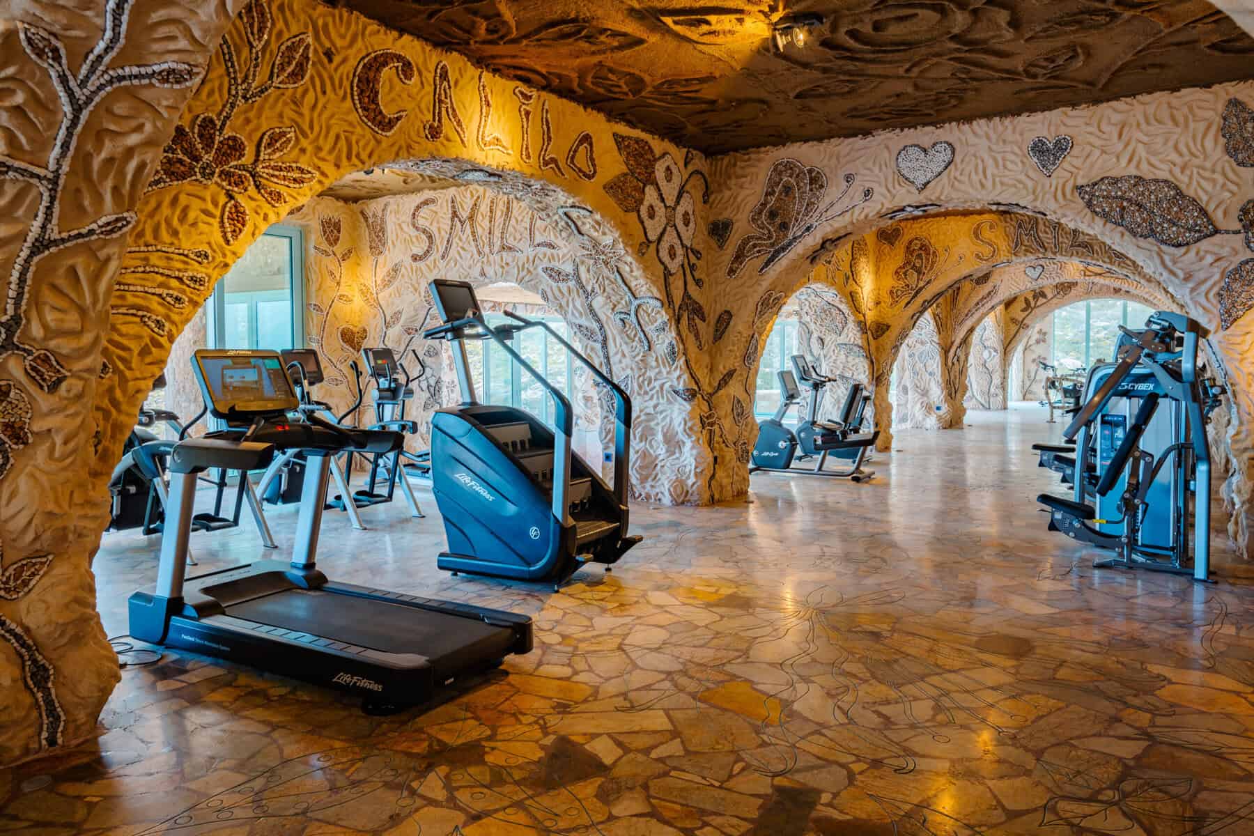 We spent three days at Calilo, experiencing something different each morning, noon, and evening, and still felt we could do more without repeating ourselves or growing tired of Calilo’s many offerings. One of the newer amenities is the three-story spa and fitness center that impresses from the first step. The entire facility is again decorated with mosaic murals promoting peace and positivity, with blue-lined flowers etched across the marble floors and walls, extending from the entrance and can be found in the bathrooms. A collection of tech-forward exercise equipment reinforces this level of detail, encompassing everything a fitness enthusiast desires from stair machines and free weights to an indoor pool for laps.
