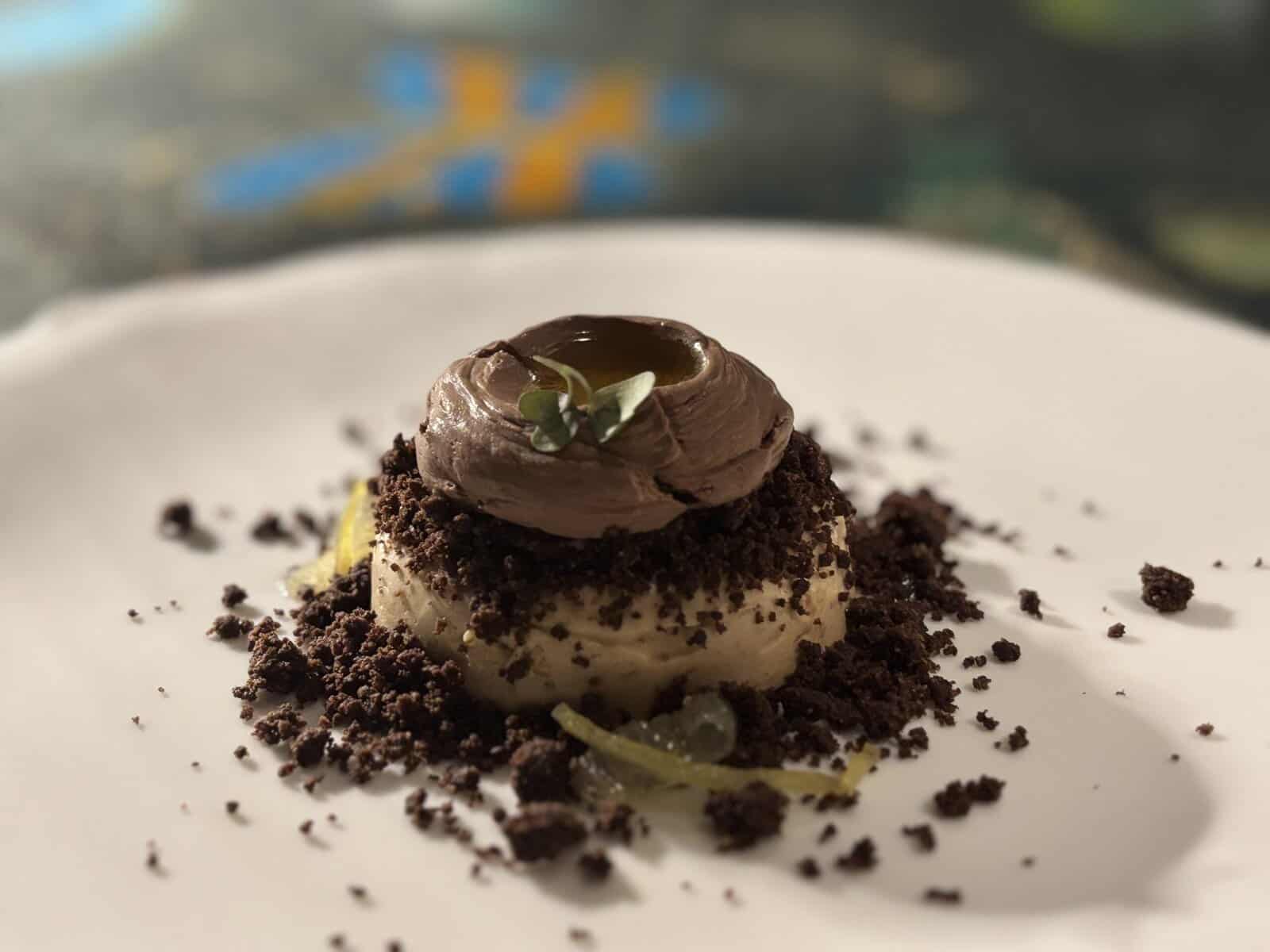 The Ios dish was made with the island’s flagship ingredient, a Myzithra cheese, which was smothered over pasta, offering a hearty and savory spoonful I didn’t want to end. The Mykonos, a tasting of onion pie featuring a collection of stewed, caramelized, and fried onions, onion gel, paired with a skirt steak cooked over a Japanese grill that cooks it close to the coals to achieve a robust smoky flavor, made for a hearty closing to the savory options. And last, one of the closing desserts was an almond parfait topped with dark chocolate mousse infused with coffee and layered with a helping of olive oil to intensify the flavor, providing a sweet finish with a never-before-seen flavor profile.