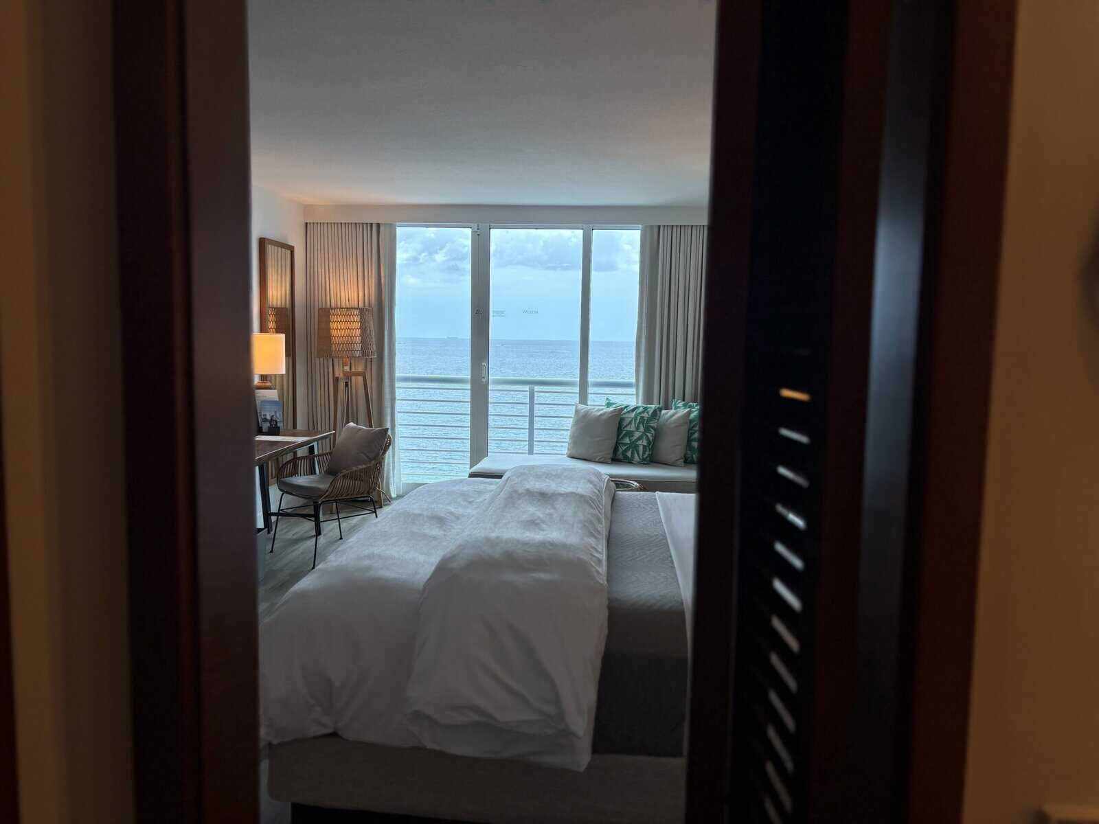 With all the excitement waiting outside their door, Westin combines its high standards of hospitality and love for luxury design with Fort Lauderdale’s beach vibes and relaxed atmosphere to create an ideal seaside escape that invites you to stay in. From the moment you wake up, you’re greeted with ocean views and the sounds of waves crashing just outside your floor-to-ceiling windows. The stunning view is complemented by a lounge chaise and coffee table nearby, offering peaceful mornings with coffee or relaxing evenings with a cocktail or glass of wine. This view extends beyond the chaise and bed, reaching as far into the bathroom vanity and shower, allowing you to start and end each day with the ocean view in sight. Book your room here.