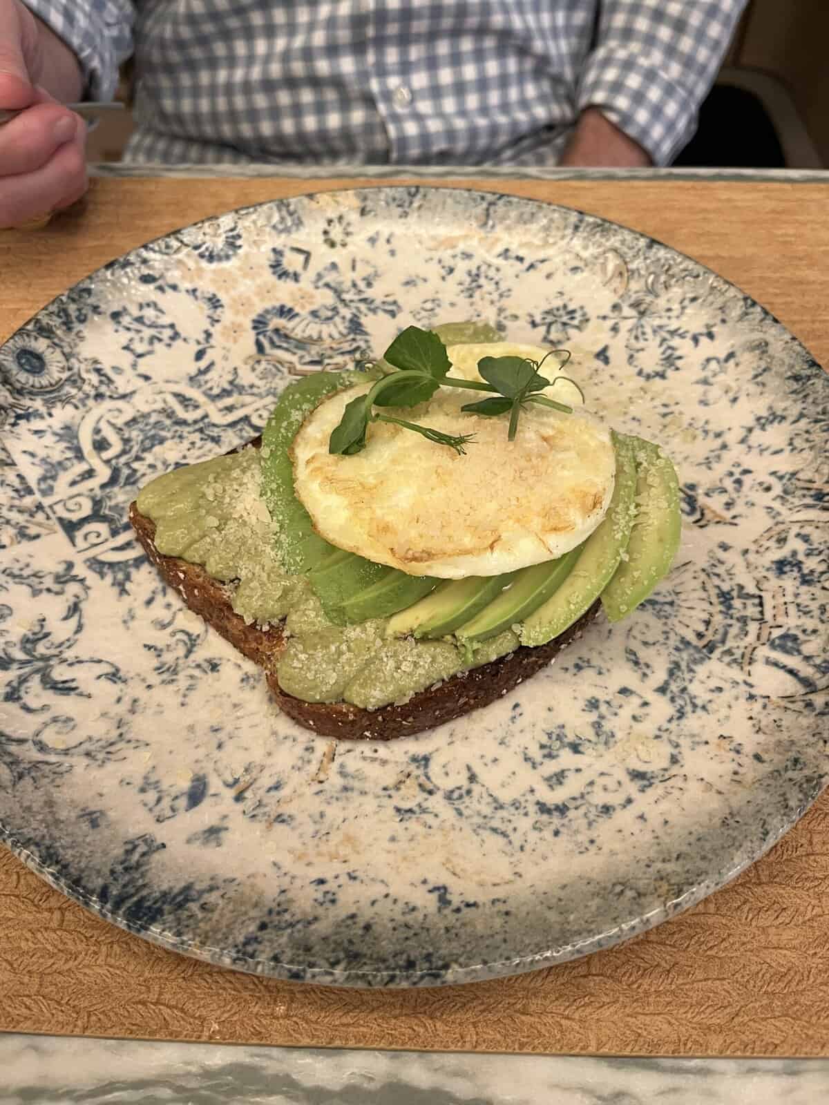 Breakfast was equally enjoyable, featuring avocado toast with avocado purée, a bowl of fresh berries, and expertly prepared cappuccinos and lattes.