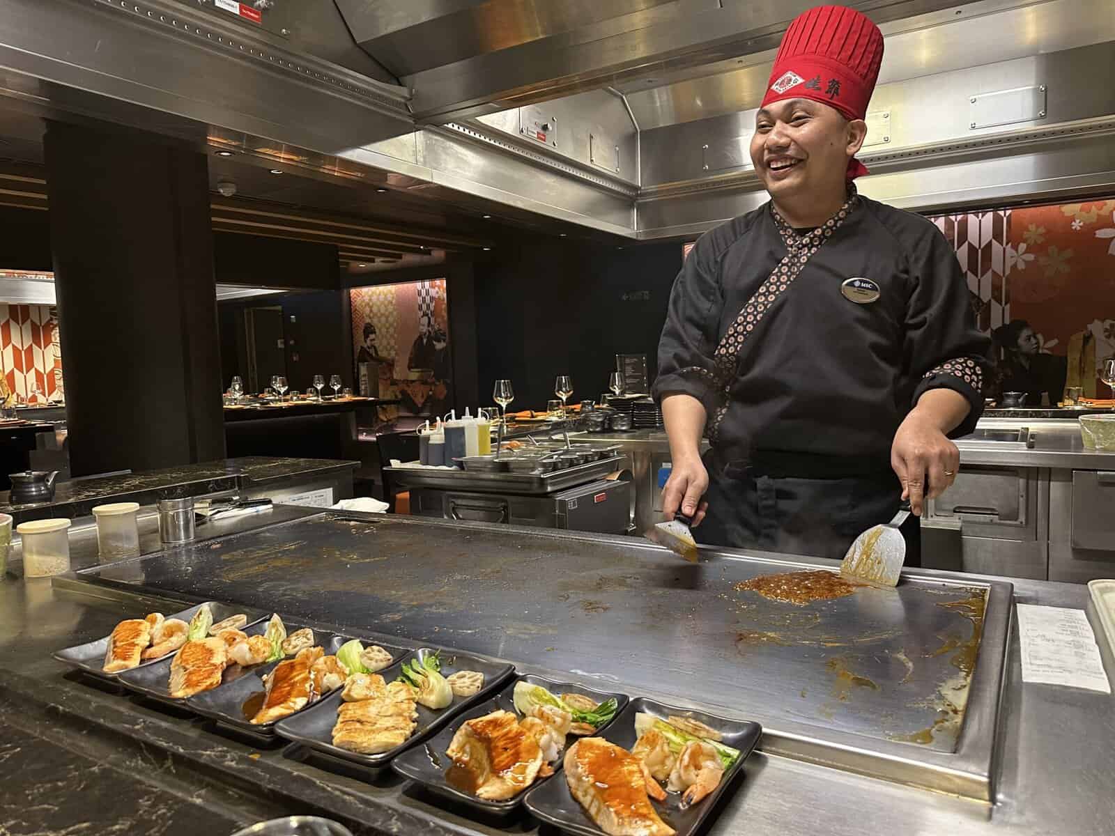 - Specialty Dining: In addition to the traditional dining room, MSC Seascape has several specialty restaurants serving a variety of global cuisines, as well as steak and seafood. Our favorite was Kaito Teppanyaki. Our chef, Bagus, not only made fabulous fried rice, but he was quite entertaining and kept us laughing throughout dinner. TIP: Make a reservation to dine at a specialty restaurant for your first night onboard. Ours was nearly empty that evening—but packed every night after!