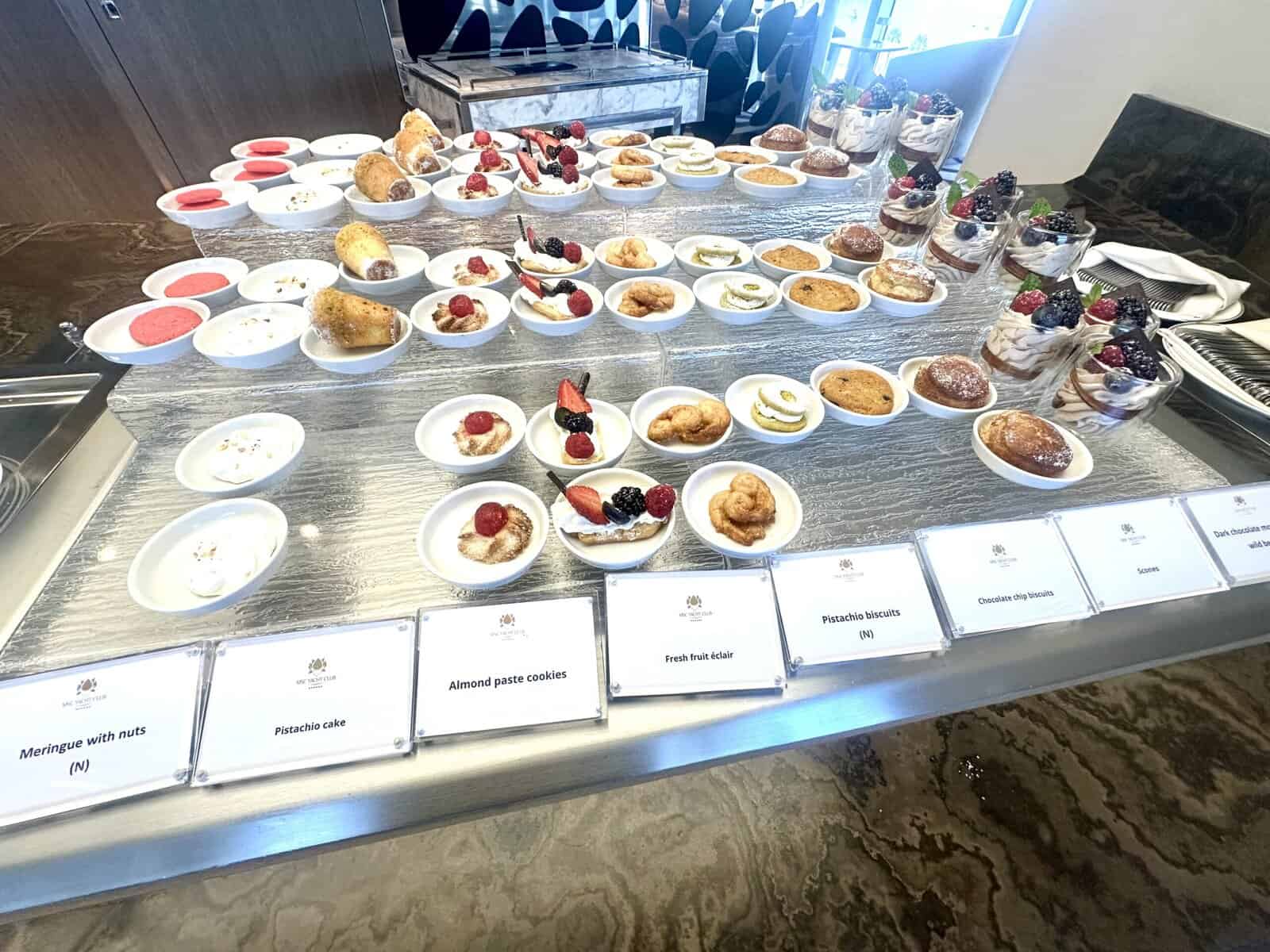 Desserts in the Top Sail Lounge. Photo Wendi Baird - Sun Deck & Pool: The secluded sun deck and pool for Yacht Club guests is a peaceful place to relax and cool off in the pool. Forget setting your alarm clock for daybreak in order to get a lounge chair by the pool. The Yacht Club’s pool was never crowded when we sailed and had plenty of seating to accommodate everyone.
