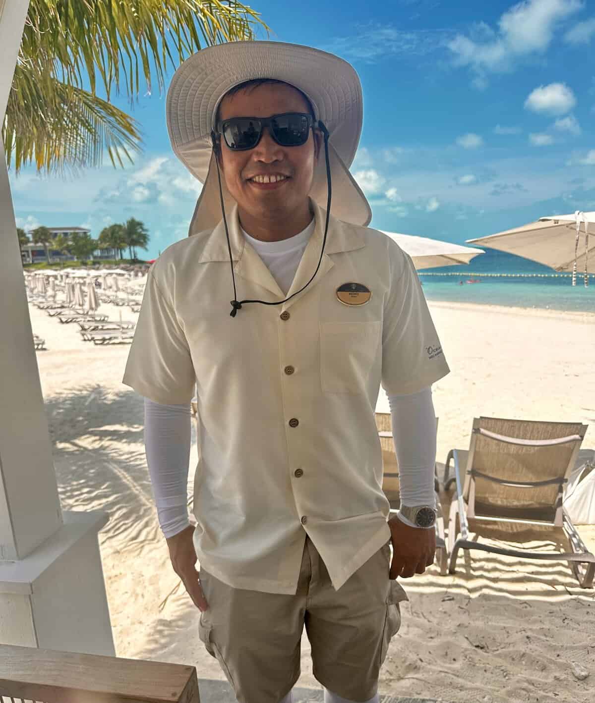 Enjoying a cocktail on Ocean Cay, MSC’s private island. Photo Wendi Baird - WiFi: Staying connected in today’s world is important for many people, even on vacation. Wifi for two devices per person is included for Yacht Club guests.