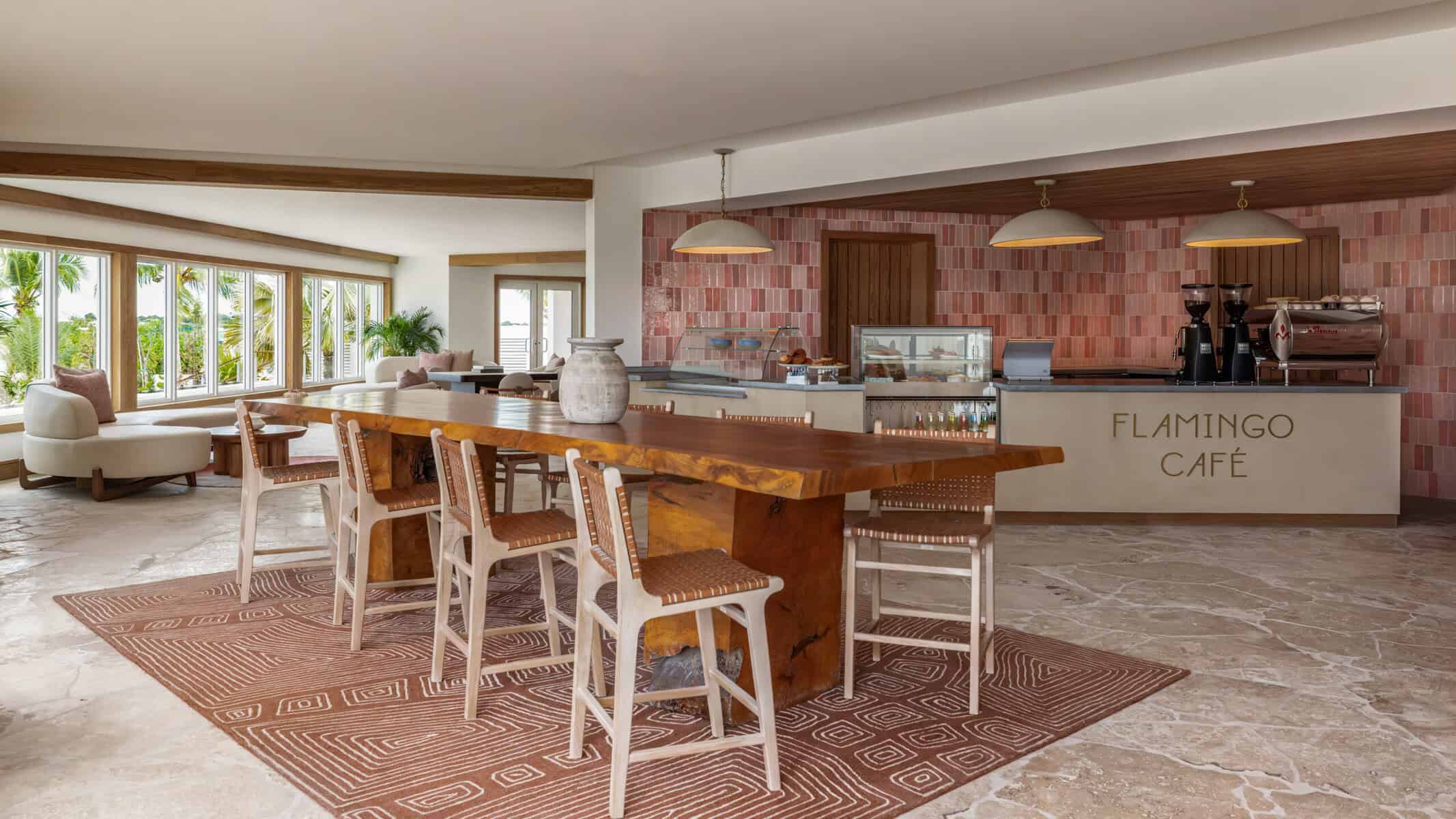 Flamingo Café in the main building offers grab and go food items from morning through the afternoon. One thing I loved about the interior is the use of the colored tile in various locations throughout the main building. Flamingo Café features the pink tile.