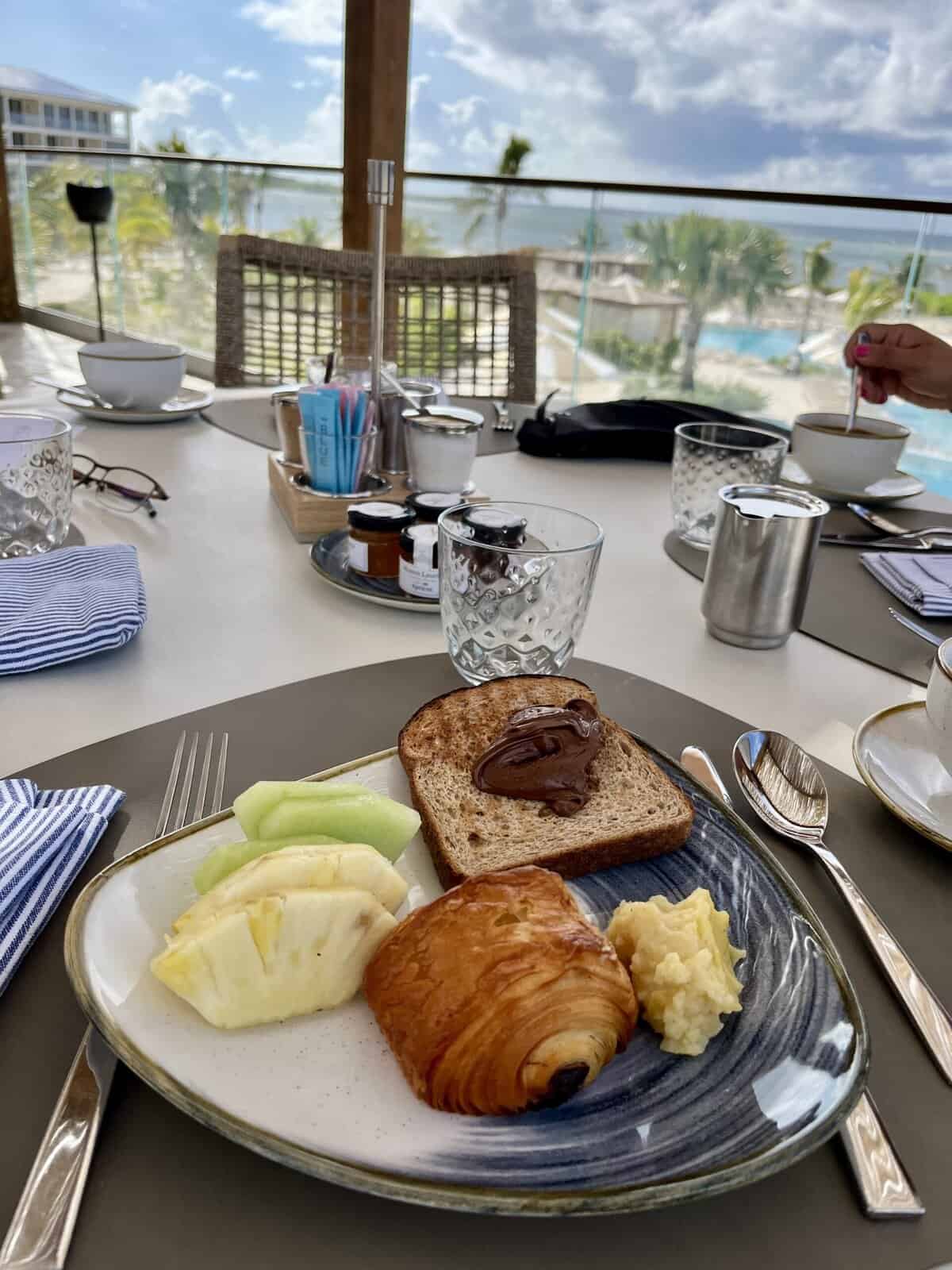 Regatta is the casual restaurant on property with an outdoor patio and a very relaxed menu. Drink offerings include Caribbean cocktails, local beers, and wines by the glass. I enjoyed their craft your own plate offering where I could choose a protein, such as tiger shrimp with a sauce, like the garlic herb butter, and a choice of two sides, such as the truffle Parmesan fries, creamed spinach with nutmeg, or a coconut jasmine rice, for instance. You could also order off the menu and enjoy a starter of conch and clam chowder, the callaloo and cheese dip (which is basically spinach dip like we have in the US.). Various salads, sides, and signature dishes are also offered.