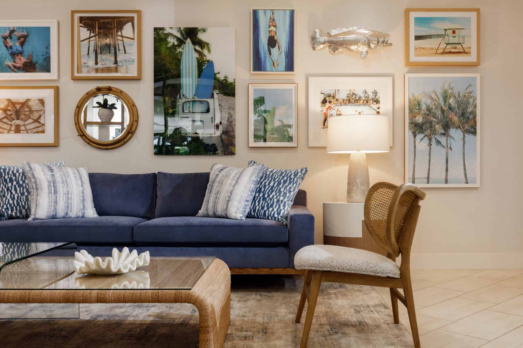 Breezy blue hues and nautical accents are carried throughout the 18-acre resort. Modern, eclectic décor adds sharp contrast to the classic 1950s motel architecture that shapes SkyBeach’s character.