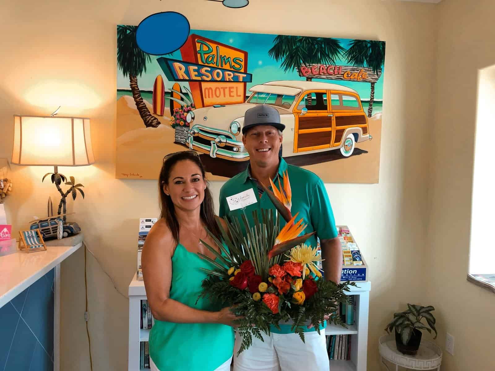 The resort’s proprietors, Scott and Lori Morrison, are delightful. Lori vacationed on South Padre growing up, and whenever she and Scott visited the island, The Palms Café was always their first stop. When they saw the inn was for sale, Scott, who’d recently retired from a successful law career, and Lori, his middle school sweetheart, couldn’t resist. “We did it for the fun of it and the love of it,” says Scott. You can feel that love in every detail of this wonderful seaside oasis.