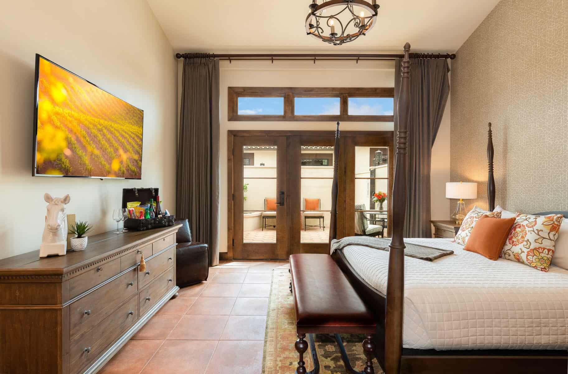 Check-in feels like a warm welcome to Spain — complete with a glass of sangria and friendly service (we were lucky enough to meet Ray, whose hospitality set the tone for our stay). The Casitas are tucked into a setting that feels like a quiet Spanish street, each with a king-size bed, a private patio, and access to a cozy fire pit. S’mores kits are available for purchase — perfect for a starry Temecula night.