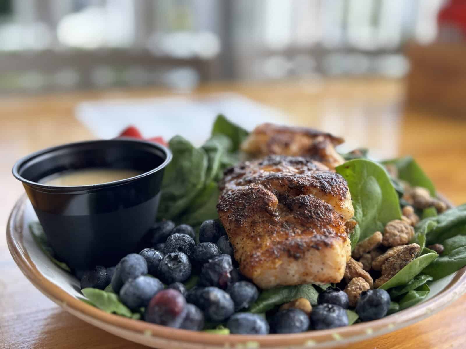 Entrées are sure to delight. The Ahi Tuna Steak with cucumber wasabi and coconut rice is a complex yet beautifully executed, protein-packed meal. The rice provides a fragrant and fluffy base to balance the spicy kick of the wasabi. The Gulf Grouper is a staple here and makes an excellent partner for any salad, sandwich, or entrée.
