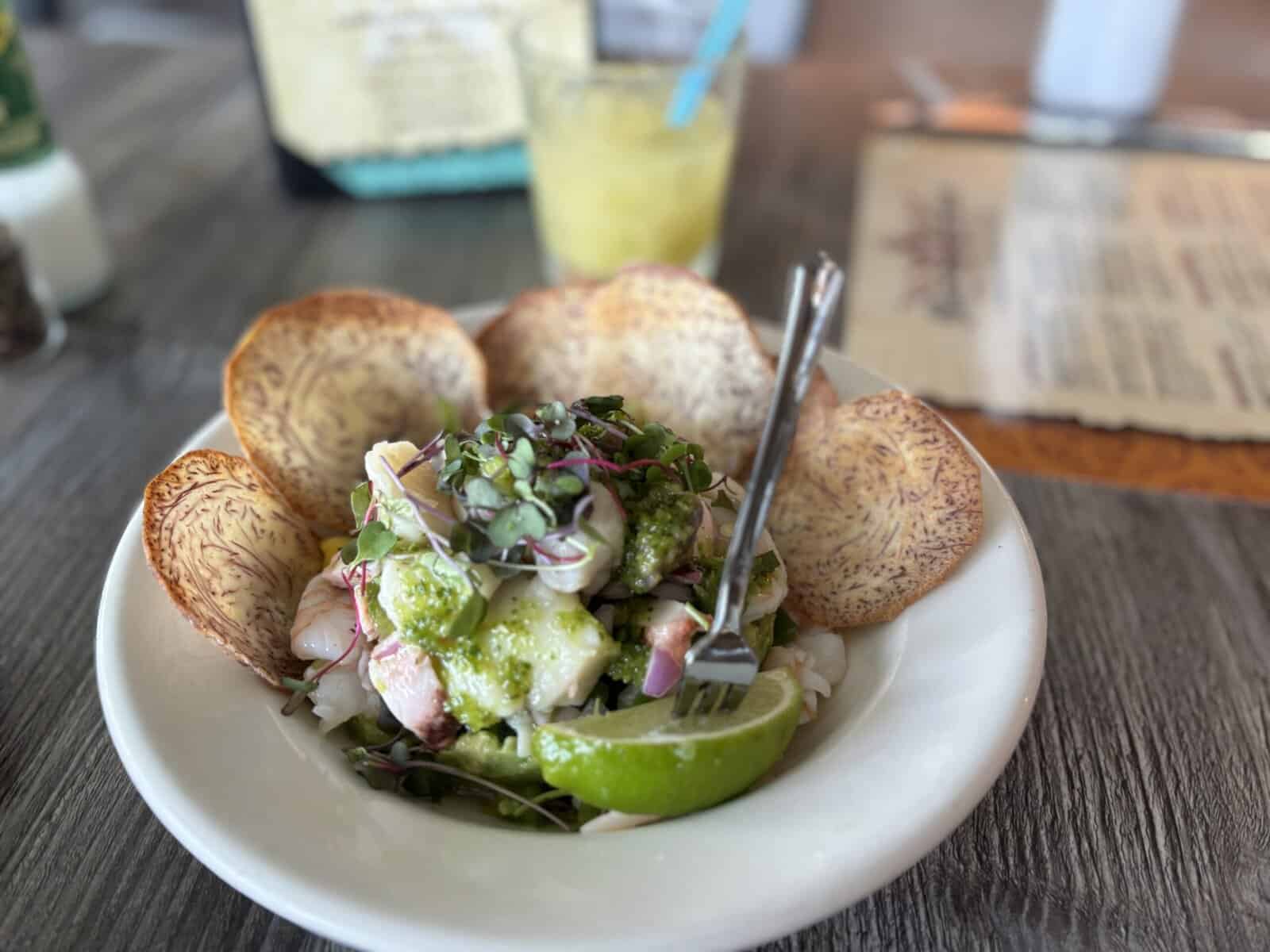 Other notable mentions, outside of the Beachwalk, include Marina Cantina, where Mexican street food blends seamlessly with island life. One of the standouts of my visit was the Casa Ceviche, which features a mix of snapper, shrimp, scallops, octopus, and chopped mango topped with taro chips, adding an extra layer to the usual citrusy flavor.