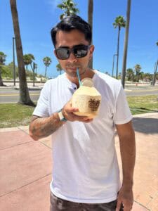Along the Beachwalk down from the Wyndham Grand, you’ll find many surf shops, beach bars, and seaside cafes, all radiating with a relaxed island vibe wrapped up in that classic Floridian energy. It’s easy to want to explore each one, whether you’re looking for some retail therapy or searching for the bottom of a refreshing island drink. But as you step out into the sun, braving the intense coastal humidity, make sure to stop by the Coconut Shack.