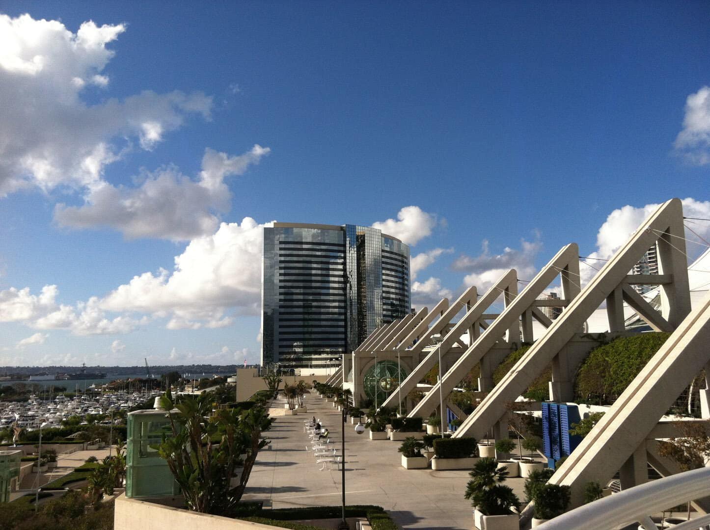 By foot, Harbor Drive is 10–15 minutes from Little Italy, where more vendors and seaside restaurants await. Here, you can catch a sailing cruise, visit the USS Midway, or stroll through the charming Seaport Village, a picturesque seaside fishing village complete with restaurants, cafes, souvenir shops, and, you guessed it, streetside vendors. If you feel like having a real hike, within 10 minutes is the San Diego Convention Center, home to the famed San Diego Comic Con. Here, you can burn off lunch by scaling steps to see the sun dazzling above the harbor and the long, winding bridge to Coronado before descending into the buzzing Gaslamp District, where bars and restaurants offer up the best of San Diego nightlife.