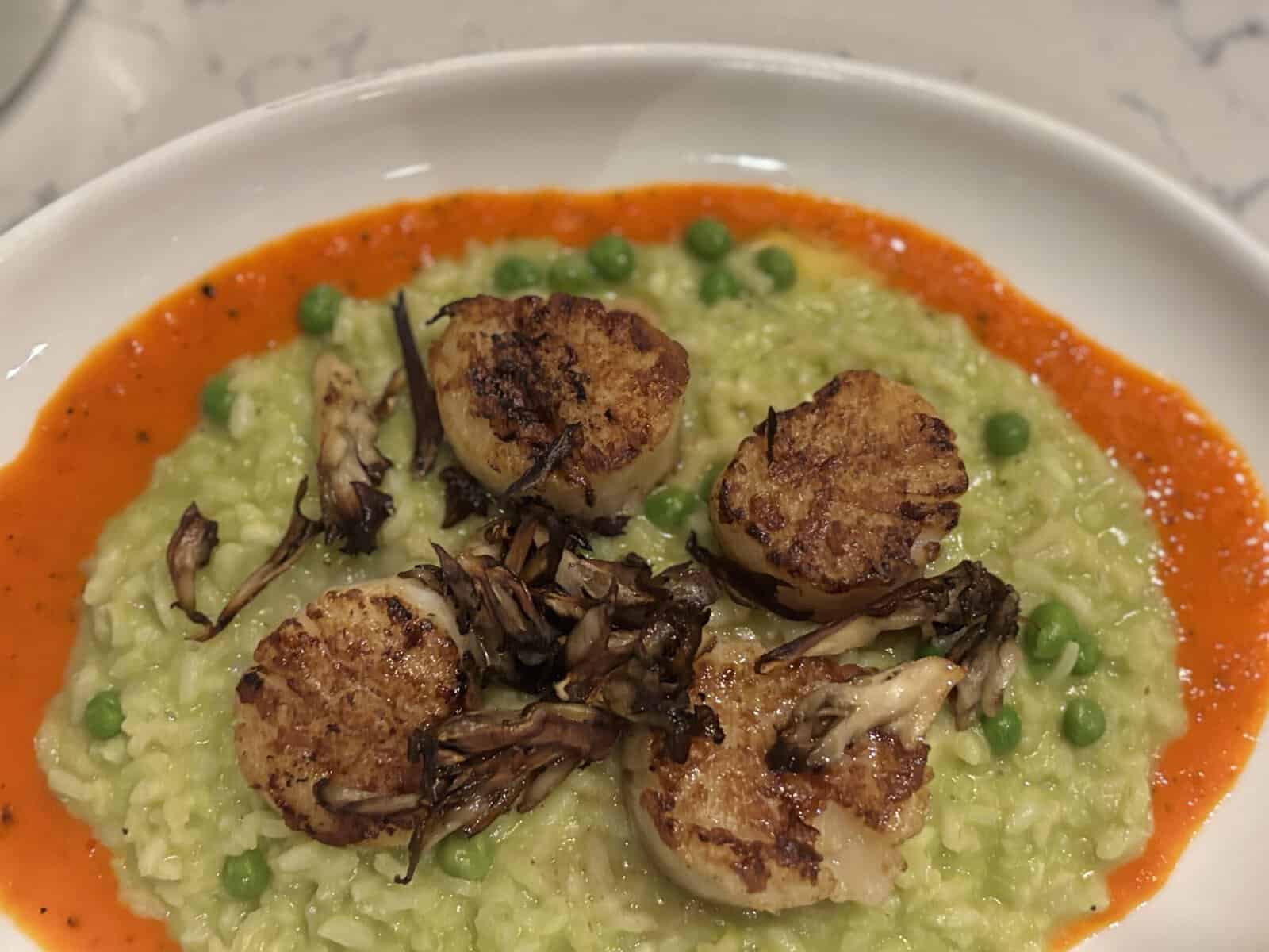 The Fritto Misto is a welcoming starter. This combination of lightly fried and crispy calamari, tiger prawns, and zucchini, topped with a lemon aioli and garnished with a charred lemon, bursts with acidity and crunchy textures. For entrees, the Seared Scallops with English pea risotto and exotic mushroom with a red pepper coulis is an earthy delight balanced with heat and mild sweetness. The Pan-Seared Salmon is another savory showstopper, especially when paired with the Mac and Cheese.