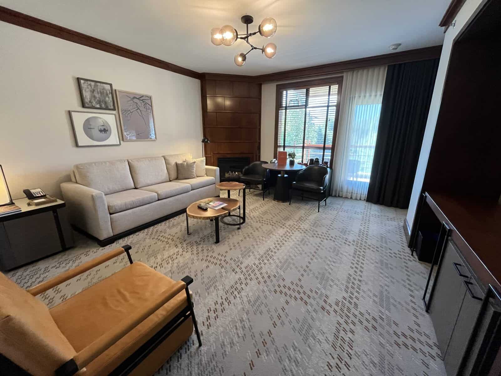 We loved our spacious suite, where a hallway led to a large living room (with its own full bathroom), separately the king bedroom led to its own spacious bathroom. The mountain views from the patio, which changed from morning to evening, were spectacular!