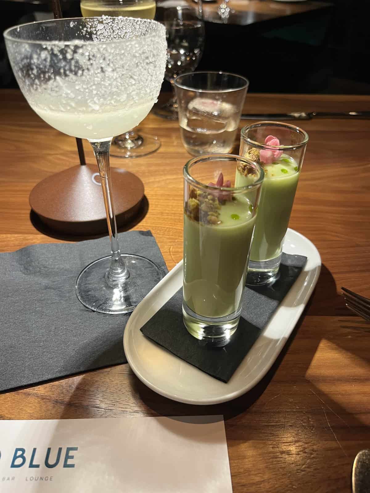 For a culinary adventure beyond the resort, Wild Blue Restaurant + Bar should be at the top of your list. With its sustainable, Pacific Northwest–driven tasting menu, this spot highlights Canadian prime beef, Italian inspiration, and umami-forward creativity. We especially loved the amuse bouche of refreshing cucumber gazpacho with pistachios, a second course of burrata featuring Okanagan Valley tomatoes, housemade linguine with clams, and a perfectly cooked prime tenderloin. Each course was expertly paired with local wines—think Phantom Creek Estates Riesling or Unsworth Pinot Noir Rosé—for the full experience.